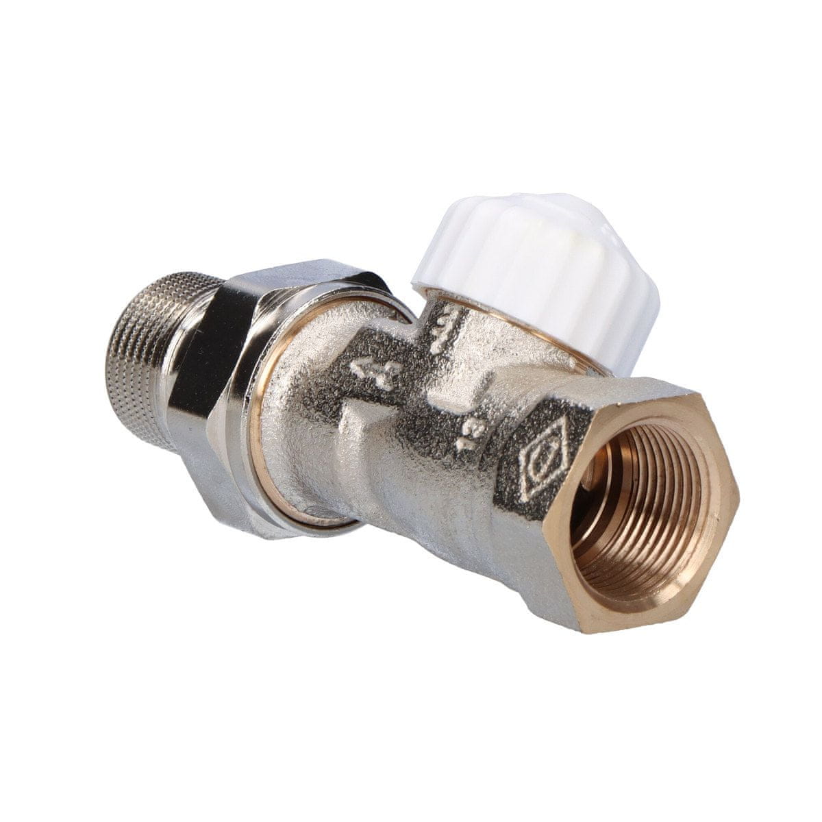 Termostatski ventil V-exakt II DN20 ponikljan, bela kapa, raven, s prednastavitvijo Celoten opis