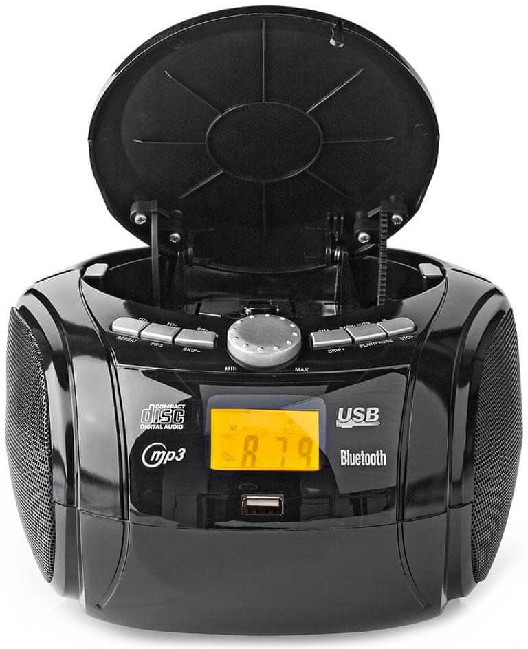 Nedis Predvajalnik CD Boombox/ moč 9 Wattov/ baterija/ omrežno napajanje/ stereo/ BT/ FM/ USB/ črna