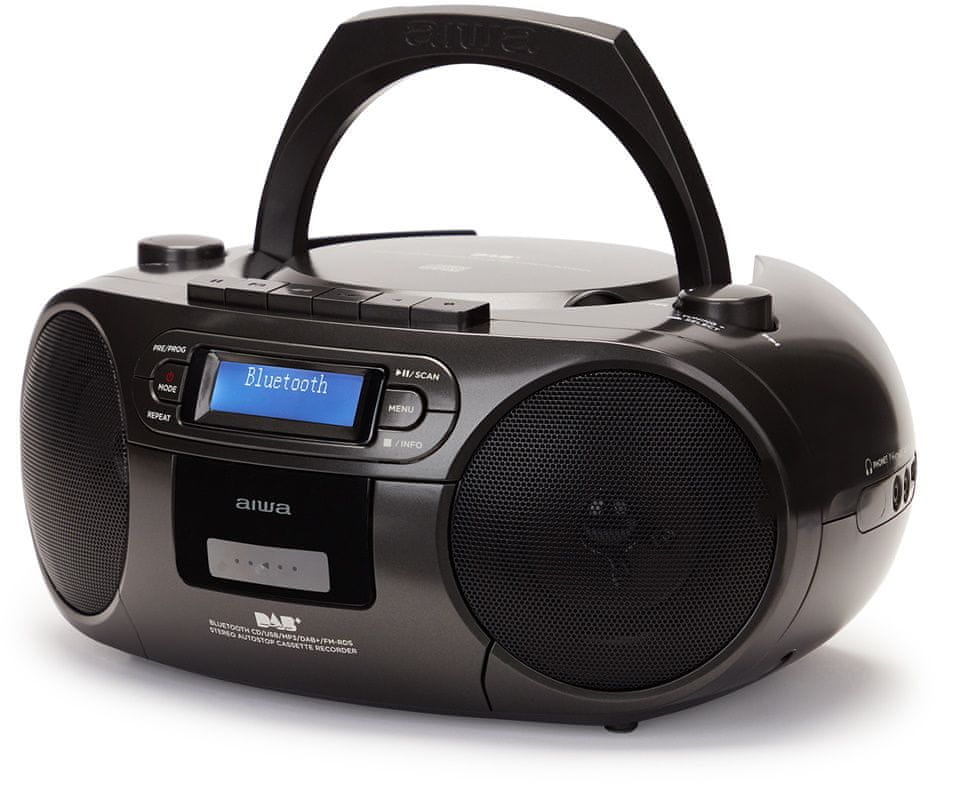 Imate doma zbirko CD ali kaset? Vključite jih v ta stilski boombox AIWA in uživajte v najljubših albumih z odličnim zvokom iz para 2×3W zvočnikov. Naprava lahko obdeluje tudi plošče CD-R in CD-RW, če nimate fizičnih nosilcev, pa lahko priključite USB z datotekami MP3 ali preprosto pretakate glasbo prek Bluetooth 5.0. Radio se ponaša tudi s sprejemnikom DAB+ s 30 prednastavitvami, sprejemnikom FM s še 30 prednastavitvami in visokokakovostno teleskopsko anteno za nemoteno poslušanje. Posebna funkcija je možnost snemanja na kasete iz različnih virov – iz radia, CD-ja, USB-ja, vhoda Aux ali Bluetootha.