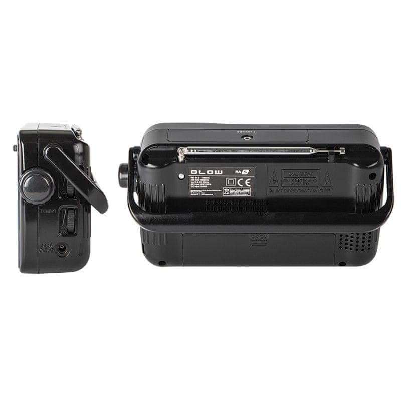 Prenosni FM radio Blow RA5 sprejema v AM in FM frekvencah – omogoča predvajanje glasbe z izbrane radijske postaje. Radio je bil opremljen tudi z vrtljivo teleskopsko anteno in potenciometrom za nadzor glasnosti. Radio je akumulator in napaja z omrežjem. Ima tudi 3,5 mm priključek za slušalke. Naprava ima izviren videz, vklopila se bo v katero koli notranjost.