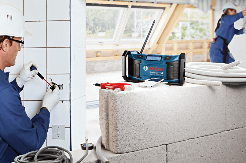 L-BOXX sistemZa močan in kakovosten zvok poskrbita dva vgrajena zvočnika moči 5 W. Radio se prilega v polovico Boschevega sistema L-BOXX in posledično omogoča, da je vedno z vami na gradbišču. Napravo lahko napajamo z Bosch 14,4 V ali 18 V akumulatorsko baterijo (ni priložena) ter preko priložene omrežne napajalne enote. Obseg dobave: