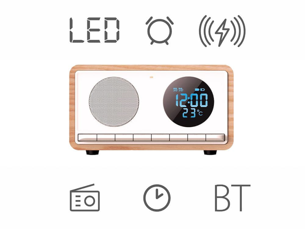 Izberite funkcionalnost in si zagotovite Manta RDI912 RIMINI – 5v1 radio / ura / budilka / zvočnik / brezžični polnilec. Zvočnik navdušuje z napredno Bluetooth 5.1 povezavo za povezovanje z napravami, vgrajene pa ima tudi vhode USB Type-C, AUX in microSD, ki še dodatno pripomorejo k njegovi funkcionalnosti. Odlikuje ga vgrajena polnilna baterija, ki mu omogoča delovanje brez kablov, na vrhu pa se nahaja tudi 10W brezžični polnilec za polnjenje naprav. Atraktiven in moderen videz mu omogoča, da je prava paša za oči, FM Radio pa zagotavlja poslušanje najljubših radijskih postaj, kjerkoli in kadarkoli! Celoten opis