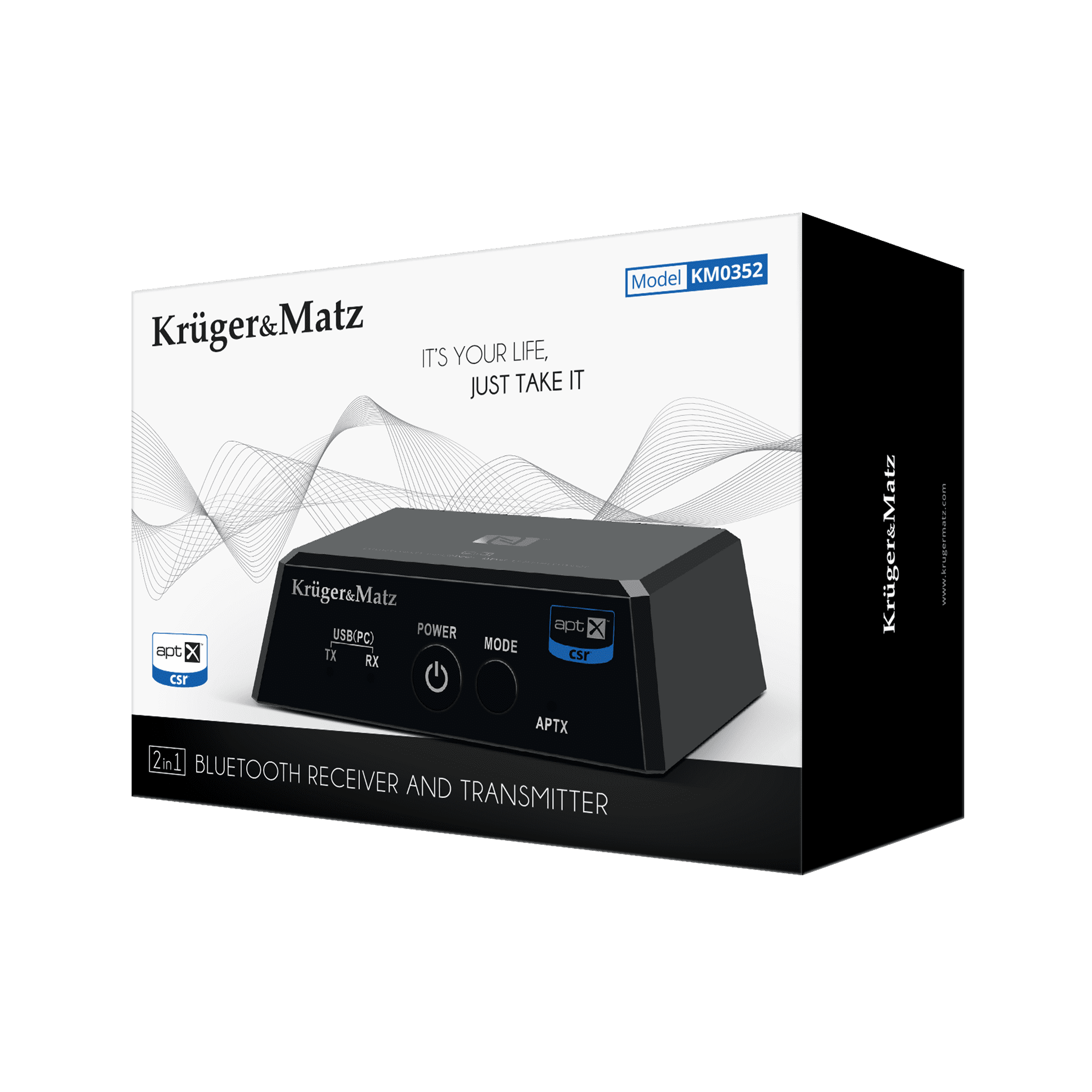 Mislite, da brezžična povezava pomeni slabo kakovost zvoka? Ne tako! Zahvaljujoč kodeku apt-X oddajnik Kruger&Matz zagotavlja odlično kakovost zvoka. Poleg tega naprava uporablja tehnologijo Bluetooth 5.0, ki ne zagotavlja le večjega dosega in stabilnosti povezave, temveč tudi manjšo porabo energije.