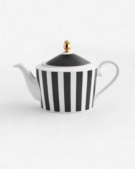 združitev tradicije in sodobnega dizajna. Ta originalni model s širokimi črno-belimi črtami krasi ročno poslikan zlat detajl na vrhu pokrova. Je popolno dopolnilo k našim klasičnim kavnim setom, označenim z logotipom La Mania Home. Je popolno dopolnilo k našim klasičnim kavnim setom, označenim z logotipom La Mania Home. Izdelano na Poljskem, večinoma ročno, v polnem sodelovanju s priznano tovarno porcelana Ćmielów.