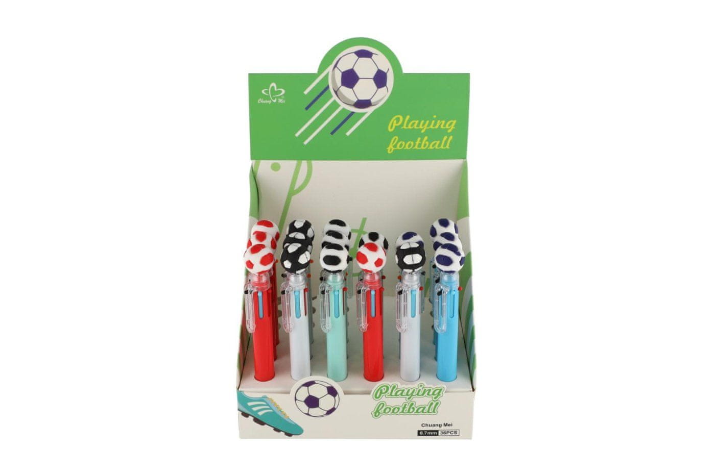Domiselno pisalo z motivom nogometne žoge, ki se samo zabava! Pisalo z nogometno žogo preprosto ne sme manjkati v nobenem svinčniku ali otroškem predalu. V notranjosti je 6 barvnih črnil, ki jih lahko poljubno menjate. Preklapljanje med barvami je zelo enostavno, preprosto pritisnite novo barvo. Otroci se bodo s tem pisalom zelo zabavali, uživali bodo v risanju, poleg tega pa ga lahko uporabljajo tako v šoli kot doma. 16 cm