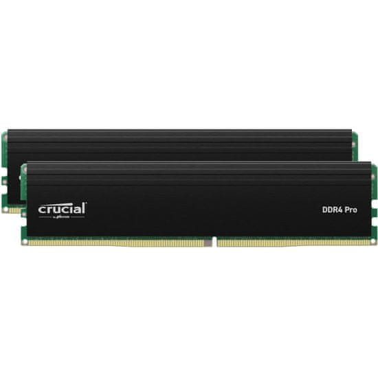 Crucial 64 GB DDR4 RAM komplet (2 × 32 GB), 3200 MHz, CAS latenca 22, neregistriran (unbuffered), z Intel XMP 2.0 profilom, primeren za zmogljive namizne računalnike in strežnike. Opremljen s hladilnikom za učinkovito odvajanje toplote. Celoten opis