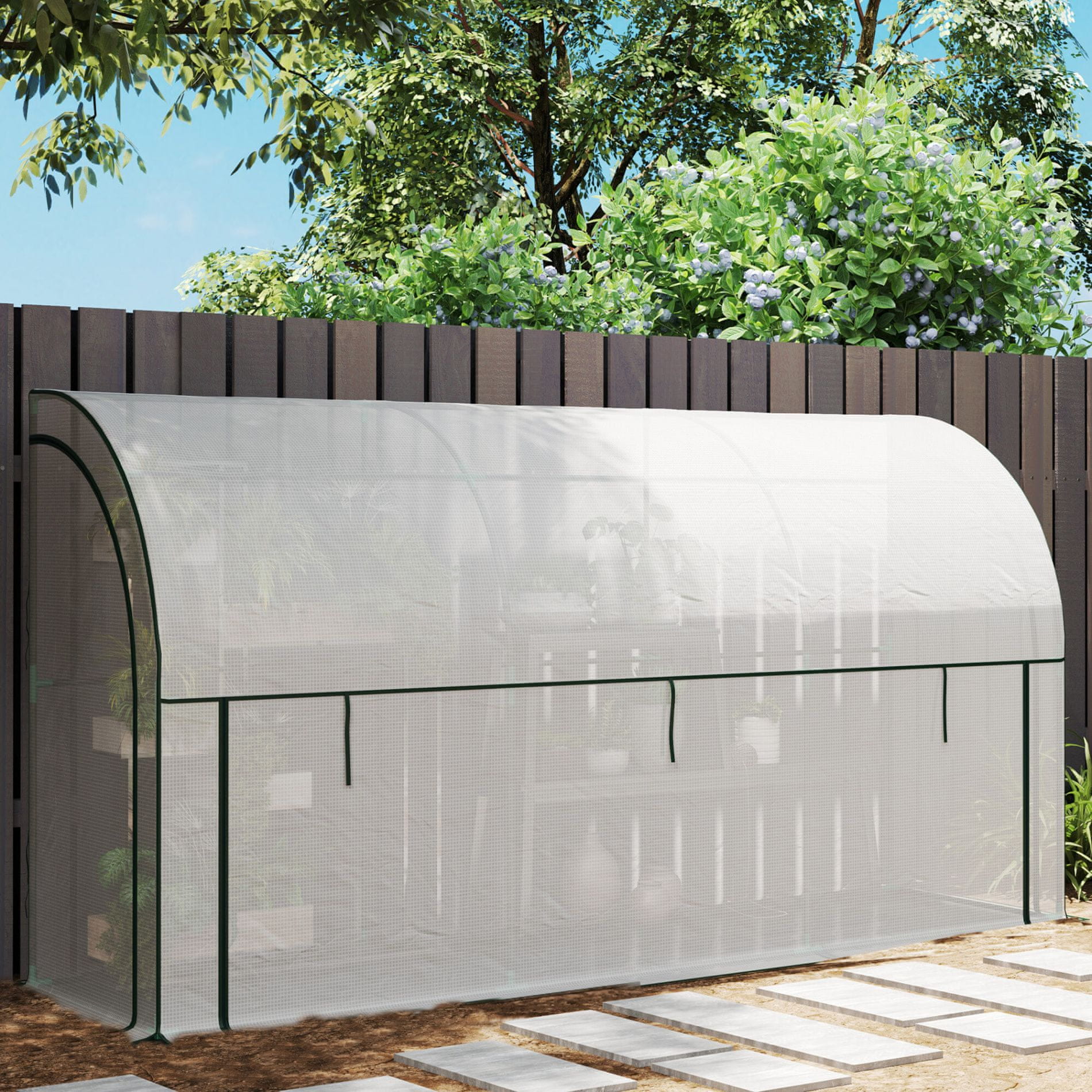 Vrtni rastlinjak iz PVC folije je idealen za vaše paradižnike, papriko in veliko druge zelenjave.Zahvaljujoč temu rastlinjaku bodo vaše rastline zaščitene pred neugodnimi vremenskimi razmerami in bodo imele odlično podporo za rast.