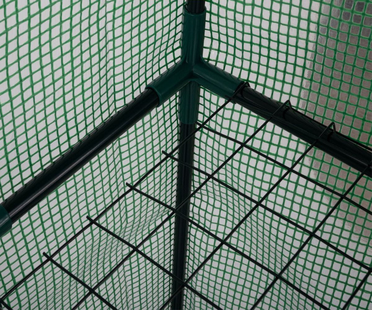 Rastlinjak je obdan s temno zeleno prevleko, zaradi česar se odlično prilega vsakemu vrtu. Je tudi odličen prostor za shranjevanje vrtnega orodja, ki ga redno uporabljate!