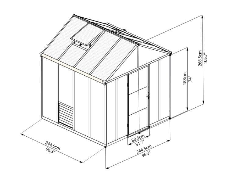 Palram RASTLINJAK - Model GLORY 8X8 - Dimenzija: 247x 247 cm, ANTRACIT