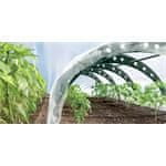 Folija je opremljena z aluminijastimi očesi. Z njimi rastlinjak iz folije pritrdite na tla. S tem so rastline zaščitene pred dežjem in vetrom. Zaradi prepustne folije lahko jasno vidite svoje rastline in zlahka preverite, kako jim gre in kdaj so pripravljene za spravilo.