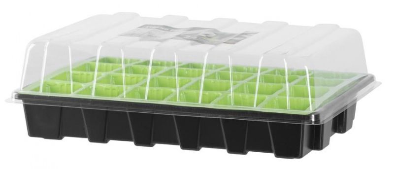 Popolnoma plastični mini lonček s sadilnikom za 36 rastlin. Lonček se uporablja za setev rastlin, predgojitev ali rezanje rastlin. 38 × 24,5 × 12,5 cm. EAN 8585023323968
