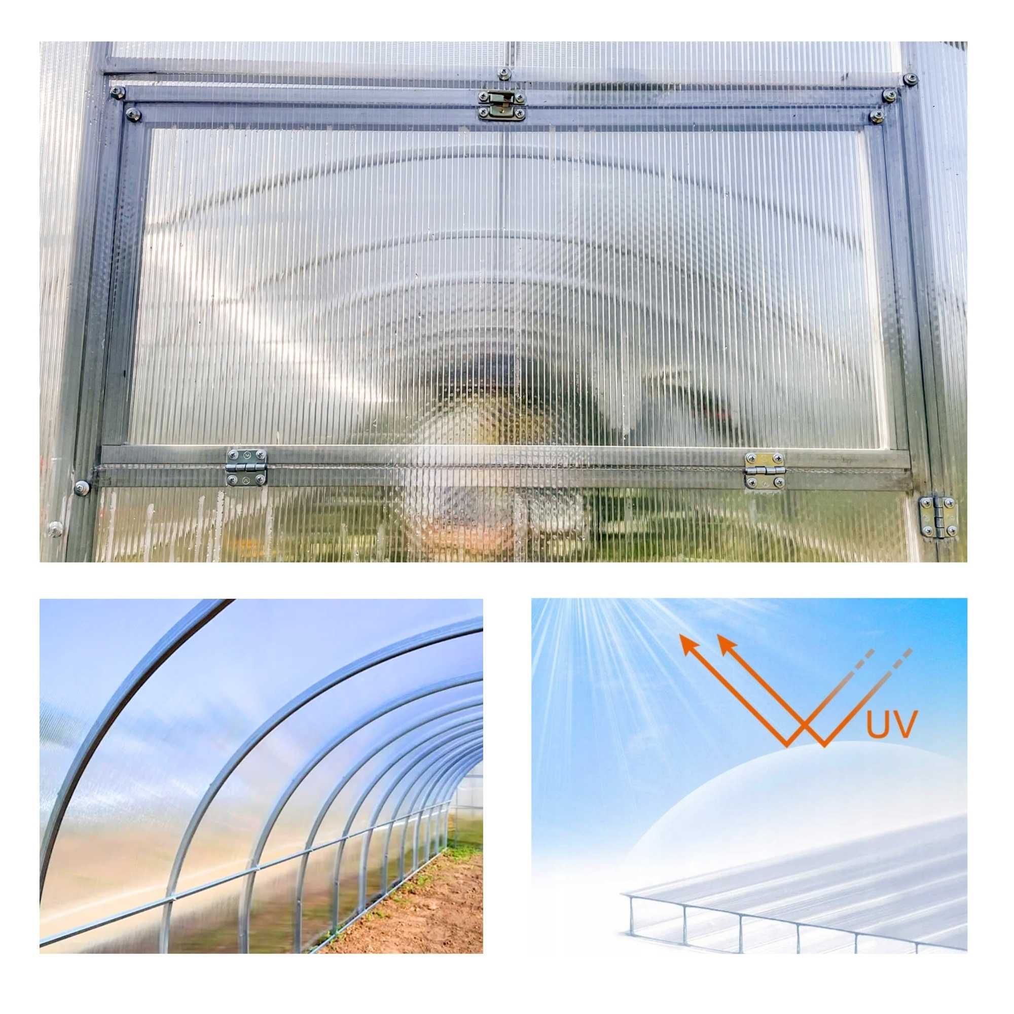Rastlinjak ima 2 vrat, vsaka z dodatnimi okni, kar zagotavlja dobro prezračevanje.