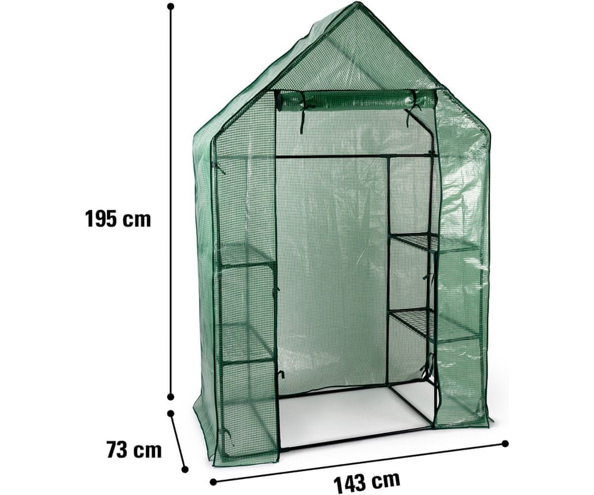 Z velikostjo 143 × 73 × 195 cm in regalom, ki ima 3 nadstropja na obeh straneh rastlinjaka, boste imeli dovolj prostora za vse svoje najljubše rože in rastline.