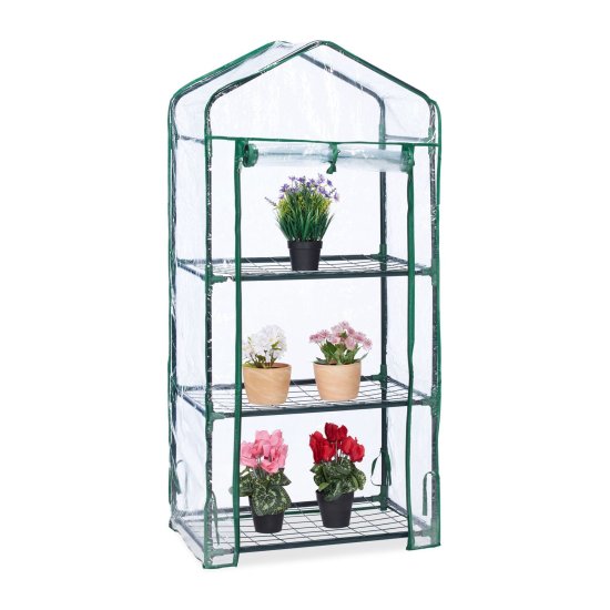 Northix Rastlinjak balkon 3 police, kompaktna zasnova, prozorna plastika, rolo vrata