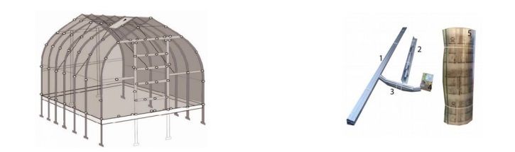Kovinski profili so sestavljeni iz jeklenega materiala širine 78 mm, debeline 1 mm in so med seboj povezani z vijaki M5. Rastlinjak je tako stabilen, da prenese zimske snežne obremenitve, zato ga ni treba razstaviti.