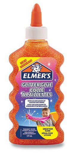 Tekutno lepilo Elmer's oranžno bleščeče lepilo ni primerno le za lepljenje, ampak je idealno tudi za ustvarjanje sluzi. Prostornina stekleničke: 177 ml. Opomba: Poleg lepila je za izdelavo sluzi potrebna tudi Elmerjeva čarobna snov.