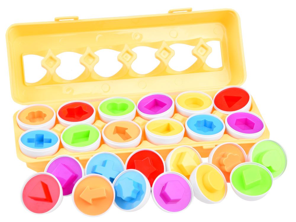 Običajna bela jajca, ki v svoji notranjosti skrivajo pisane oblike, lahko uporabite za igro na več načinov . Zlaganje dveh polovic jajc je dobra vaja za koordinacijo roka-oko, otrok se bo naučil prepoznavati oblike in jih ujemati, prav tako bo vadil prepoznavanje barv in njihovih imen, ko otrok odraste, pa ga lahko uporabite za igro: na primer v trgovini). Kot lahko vidite, je z jajci veliko zabave.