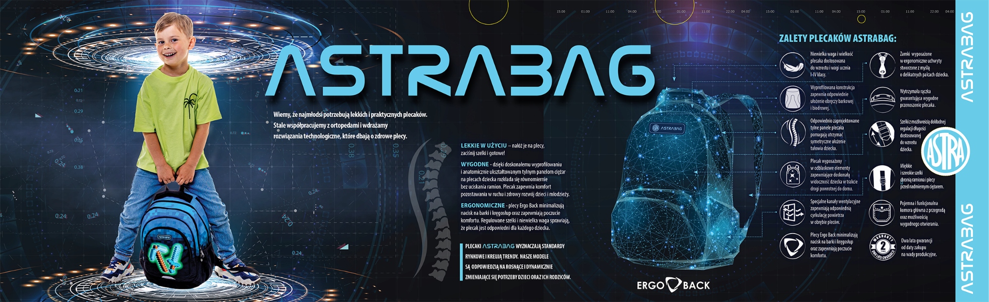 Dovolj prostora za vse! Nahrbtnik ASTRABAG DO YOUR BEST, AB300 s prostornino 27 l je odlična izbira za šoloobvezne otroke. Premišljena razporeditev predalov omogoča priročno shranjevanje knjig, zvezkov in šolskih potrebščin. Glavni predal ponuja dovolj prostora za učbenike in škatlo za malico, dodatni žepi pa omogočajo organizacijo majhnih predmetov in najljubših igrač.