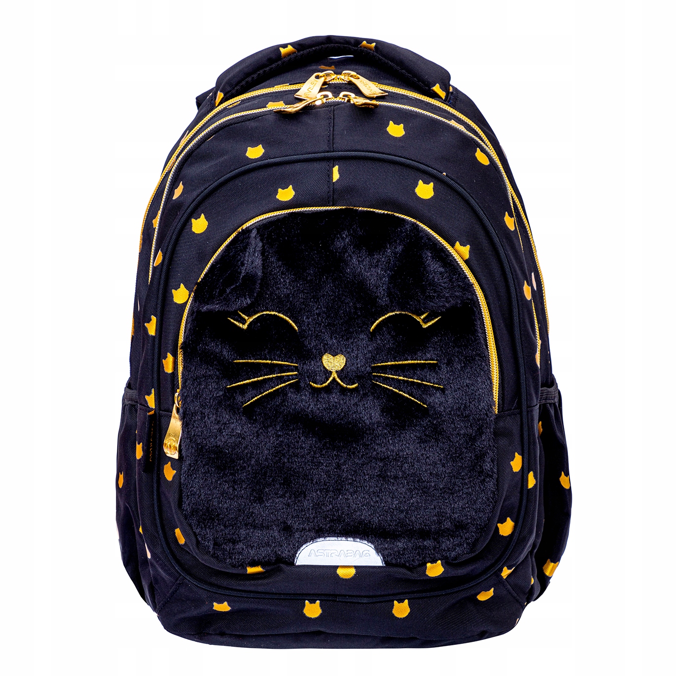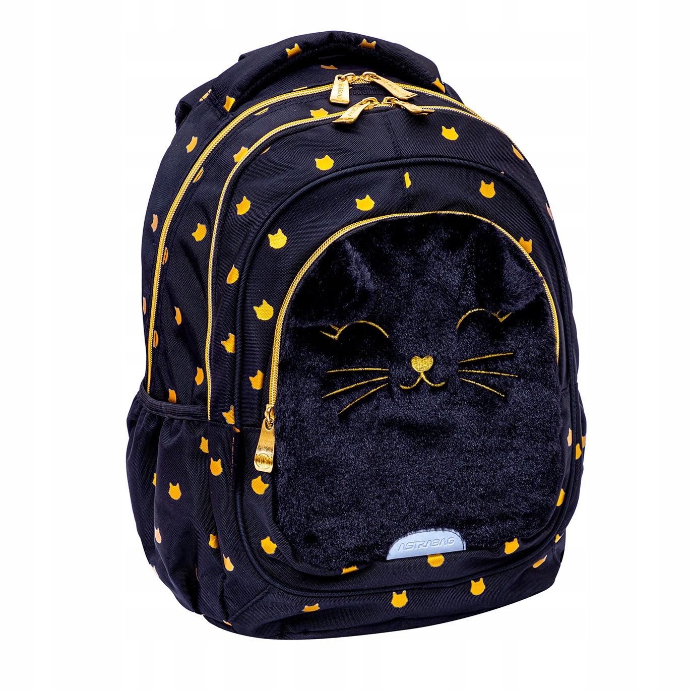 ŠOLSKI NAHRBTNIK S 3 PRIMERJAVAMI PUHASTA MUCA ČRN PLIŠASTI MUČEK ASTRABAG