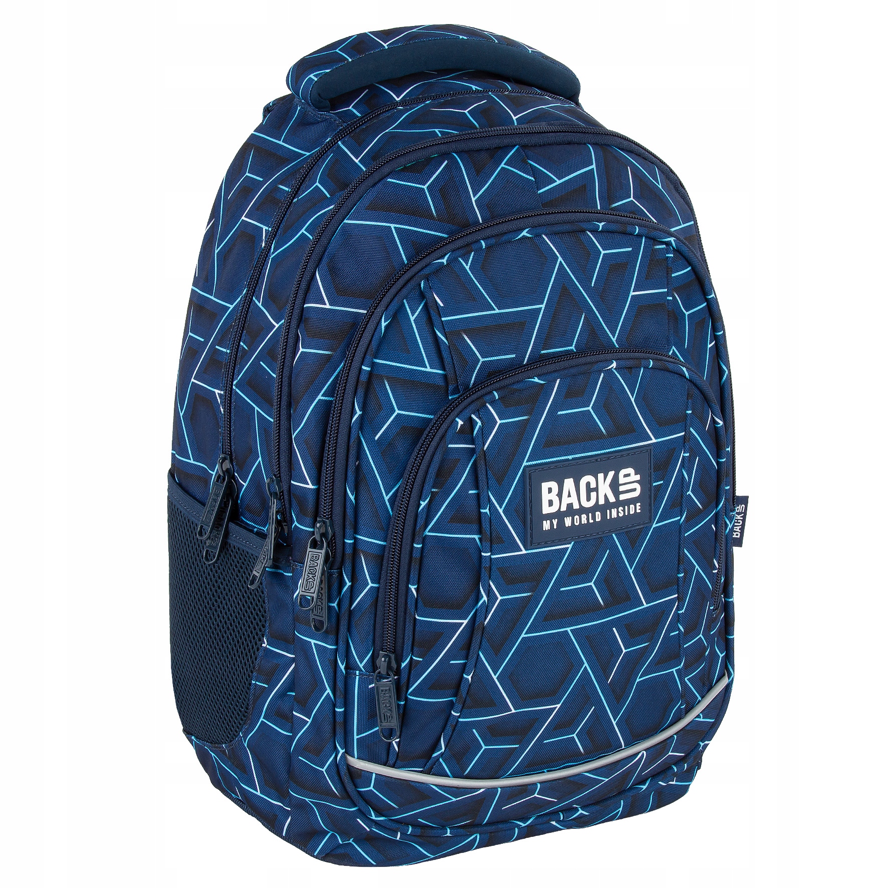Nahrbtnik BackUP 26 L iz kolekcije ION je odlična izbira za mlade! Izdelan je iz visokokakovostnega materiala, ki je vodoodporen in vzdržljiv, njegov dizajn z modrimi vzorci pa bo navdušil vse. Nahrbtnik ima 4 prostorne predelke, vključno z enim z velikim zavihkom za prenosnik in tablico, ter dodaten žep z zadrgo, v katerega se prilegajo dokumenti formata A4.