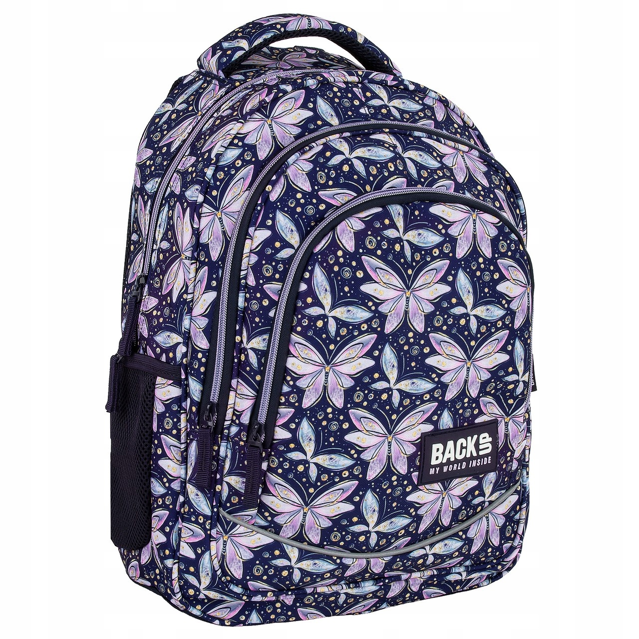 Nahrbtnik FAIRIES združuje barvit, pravljični dizajn z maksimalno praktičnostjo. Odlična vsakodnevna izbira za šolo ali izlete.