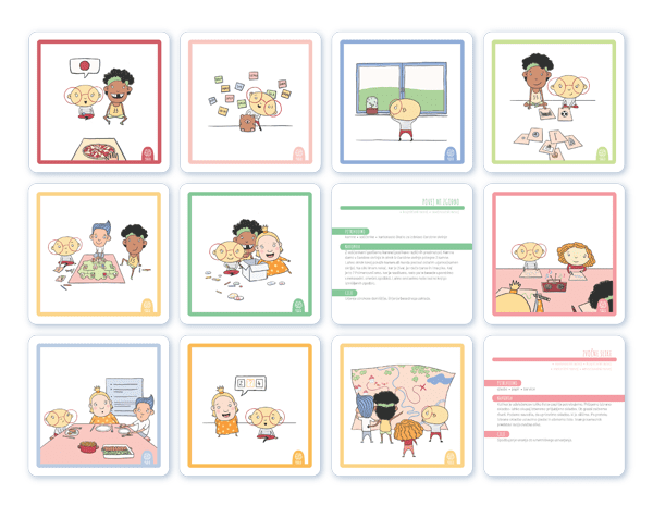 Če bo določena dejavnost za otroka preveč enostavna, boste našli nasvet, kako jo lahko naredite bolj zahtevno. Igralne kartice so razvite z različnimi pedagoškimi načeli v mislih.