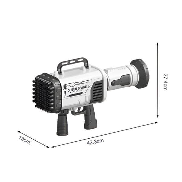 • Za rojstnodnevne zabave Pištola je narejena iz trpežnega in gladkega materiala, ki je varen za otroke ter se ponaša z gladkim ročajem za enostavno držanje. Pištola bo z mehurčki popestrila vsako rojstnodnevno zabavo in spodbujala otroško domišljijo.