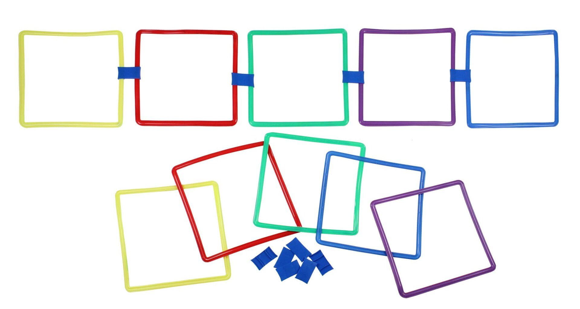 Komplet 10 kvadratov z ovirami za fitnes vadbo športnikov in za otroške telesne dejavnosti. Celoten opis
