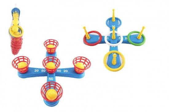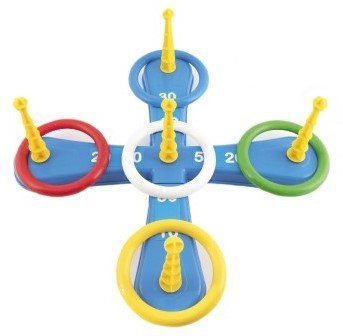 Zabavna igra, v kateri se obročki mečejo na križ. Paket vsebuje križ s petimi bodicami in pet barvnih obročkov. Posamezni deli so izdelani iz plastike. Ta igra bo všeč predvsem najmlajšim otrokom, ki lahko zbirajo točke za vsak met, ko jim uspe postaviti obroček na špico. S tem bodo trenirali tudi svojo natančnost in potrpežljivost. Druga igra deluje po enakem načelu, vendar so bodice zamenjali lončki za žogice. Primerno za otroke od 3. leta starosti dalje.