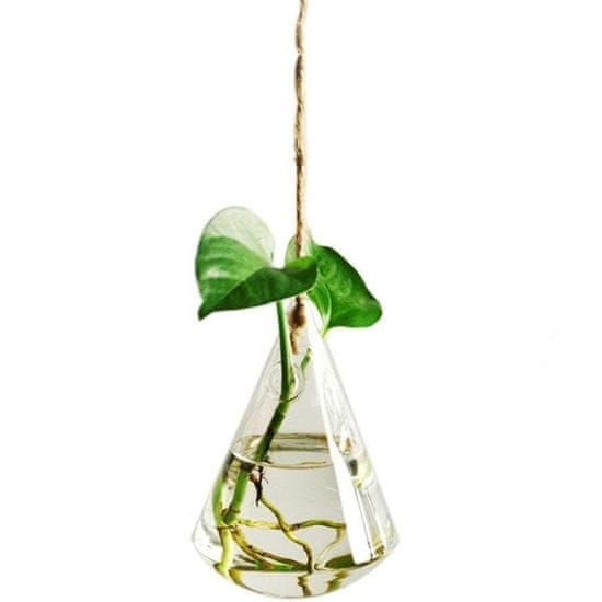 To je sladka viseča steklena vaza manjšega formata. Napolnite vazo z vodo in pustite, da vaši potaknjenci zrastejo tukaj, preden jih posadite v zemljo. Vazo lahko uporabite tudi za nekaj majhnih sveže nabranih rož ali suhih rož. Vazo je enostavno obesiti.