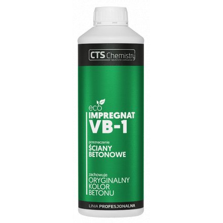 CTS VB-1 je zaščitni premaz na vodni osnovi primeren za zaščito vseh betonskih sten. Ne spreminja barve površine. VB-1 je izdelan na osnovi siloksanov, ki učinkovito ščitijo pred zunanjimi vplivi, vodo in umazanijo. Zmanjša vpojnost podlage – ščiti pred deževnico in prodiranjem škodljivih kemičnih spojin, raztopljenih v vodi, v strukturo materiala. Poveča odpornost impregnirane površine na umazanijo, cvetenje in razvoj biološke kontaminacije. Odporen na alkalije, vzdržljiv – odporen na UV žarke, brez topil. Ne poslabša lastnosti zaščitenega materiala v smislu difuzije plina in vodne pare; pore ostanejo odprte. Uporablja se lahko znotraj in zunaj zgradb, na starih in novih površinah.