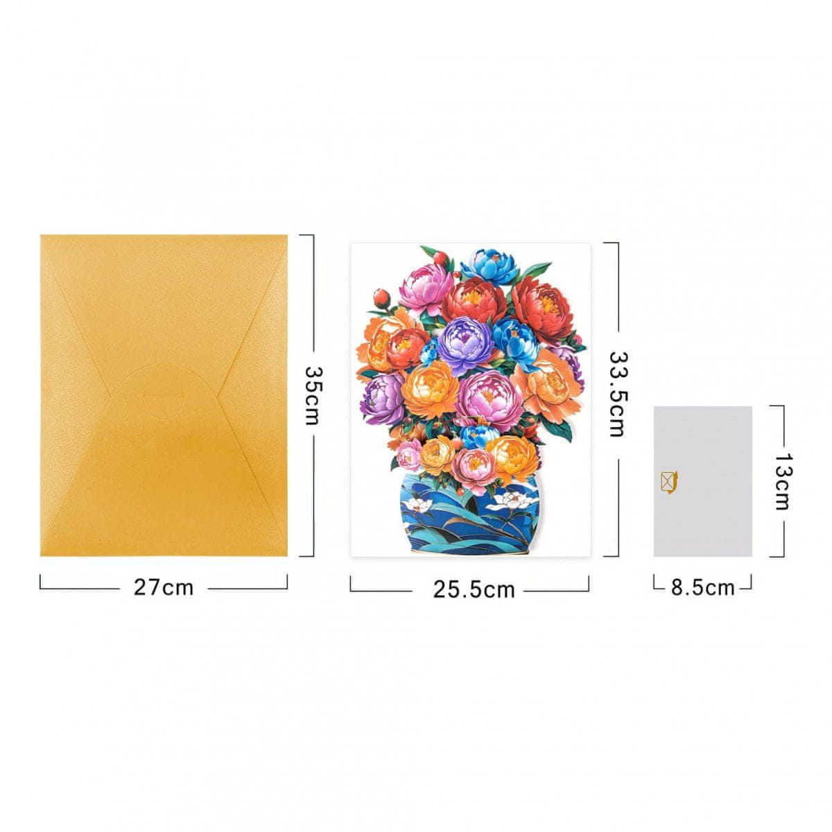 Odprete kartico in čaka vas presenečenje! Unikatne razglednice za posebne priložnosti. Inovativno in kreativno. Vsak, ki ga prejme, bo imel resnično poseben in čaroben spominek. Vsi elementi naših razglednic so natančno izrezani in nato prepognjeni za najboljši učinek. Vsak element 3D pojavne kartice je sestavljen iz več do ducata gibljivih elementov,ustvariti lepo, estetsko celoto… Ko se razgrne, se razkrije veličasten aranžma potonik v toplih odtenkih oranžne, rožnate, vijolične in modre, postavljen v elegantno okrašeno vazo. Je odlično darilo za rojstni dan, ime dan, obletnico ali kot edinstvena gesta hvaležnosti.