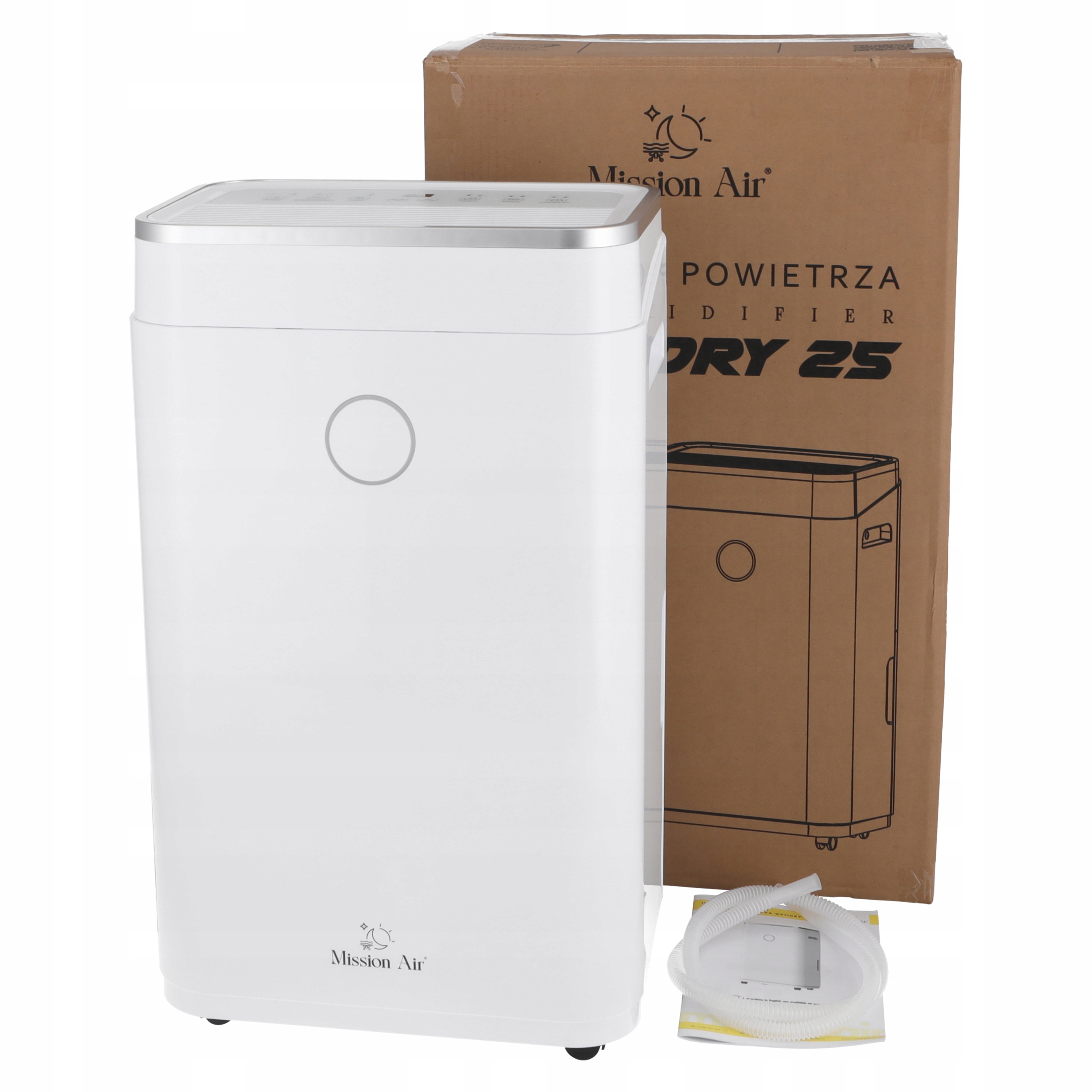(pri standardni višini prostora). Po tej dobimo učinkovitost domačega razvlažilnika zraka Mission Air OPTIDRY 25 do 62,5 m²! Ne pozabite, da na dejansko delovanje katerega koli razvlažilnika zraka vpliva veliko dejavnikov, kot so: sončna svetloba v prostoru, vrsta sten in izolacija stavbe, prisotnost drugih naprav, kot so klimatske naprave ali vlažilniki zraka, število članov gospodinjstva itd.