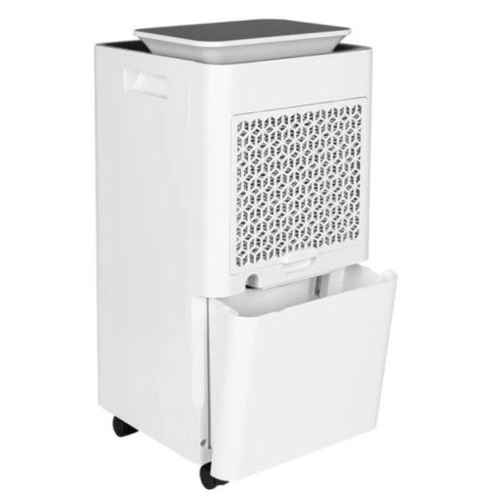 Razvlažilnik zraka ima odlično zmogljivost razvlaževanja do 10 litrov na 24 ur , kar omogoča učinkovito odstranjevanje odvečne vlage iz zraka. Izdelek je opremljen z vgrajenim zračnim filtrom in transportnimi kolesi , kar omogoča enostavno premikanje med prostori. Varnost zagotavljata opozorilo, da se je treba izogibati stiku s hladilnim sredstvom, in prisotnost piktograma GHS04. Naprava deluje z vhodno napetostjo 220–240 V in frekvenco 50 Hz in njena moč je 180 W . Poleg tega ima izdelek 24-mesečno tovarniško garancijo , kar povečuje njegovo privlačnost kot zanesljive naprave za vsakodnevno uporabo.