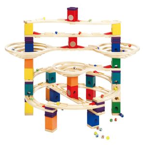 Najboljši način, da se otrok nauči novih veščin in spozna nove stvari je zagotovo skozi igro. Igralni komplet vsebuje več etažne bloke z ukrivljenimi tračnicami in klančinami po katerih z veliko hitrostjo drvijo kroglice. Poljubno lahko dodajate ali odvzamete bloke različnih nivojev, kar vodi do višjih ali nižjih hitrosti.