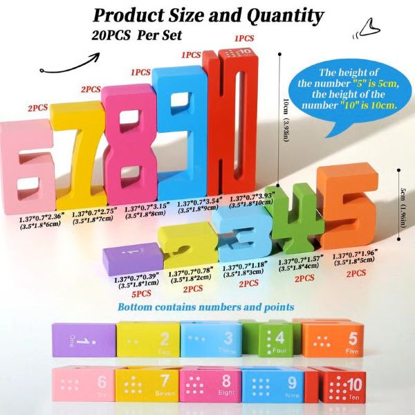 1× Montessorijev lesen komplet številčnih blokov (20 kosov) | NUMBLOCK