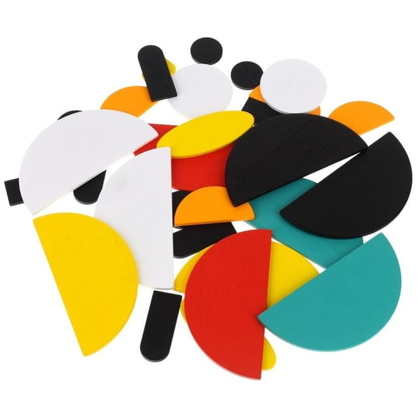 Lesena sestavljanka je čudovita, kreativna igrača, ki bo vašega malčka zaposlila za več ur, ga odlično zabavala in hkrati podpirala njegov duševni razvoj. Igra vključuje urejanje ustrezne slike glede na priložene karte – kocke le razporedite po vzorcih, ki so narisani na kartah. V spodnjem kotu so zvezdice, ki prikazujejo težavnostno stopnjo določene uganke. Komplet ponuja veliko možnosti, poleg že pripravljenih plošč lahko sestavljanke sestavljate v poljubne podobe ali oblike, ki si jih otrok zamisli. Po igranju lahko vse koščke in karte sestavljanke skrijete v rumeno vrečko, ki je priložena kompletu. Zaradi majhne velikosti imate sestavljanko vedno pri sebi. Uganke so odlična ideja za skupno preživljanje prostega časa staršev in otrok. Komplet z lesenimi sestavljankami razvija koordinacijo gibanja, natančnost in natančnost. Večbarvne kocke spodbujajo in spodbujajo otrokove možgane.