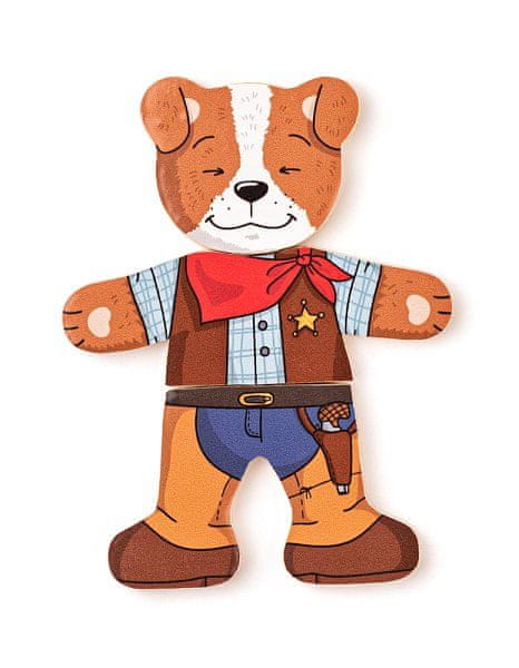 Dečki imajo možnost, da se oblečejo in spremenijo značaj psa v skladu s svojo domišljijo. Na voljo imajo obraze, ki predstavljajo različna razpoloženja, telesa in noge psa z različnimi oblačili. Razvijajo domišljijo in sposobnosti logičnega razmišljanja Pakirano v priročni leseni škatli