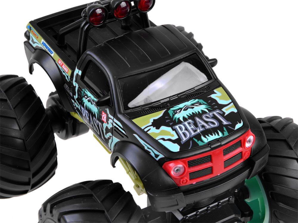 Monster Truck Big Foot Bestia je avto na daljinsko upravljanje, avtoód na velikih gumijastih kolesih z 2,4 GHz daljinskim upravljalnikom. Vozilo je v celoti izdelano iz plastike, pri čemer je pozornost namenjena najboljšim podrobnostim vozila. Igranje s tem avtomobilom bo pravi užitek. Velika gumijasta kolesa s tekalno plastjo zagotavljajo stabilen oprijem vozila v ostrih zavojih. Avtomobil se upravlja s priročnim daljinskim upravljalnikom 2,4 GHz, zato ga lahko vozite v večji skupini, ne da bi vas skrbelo motenje.