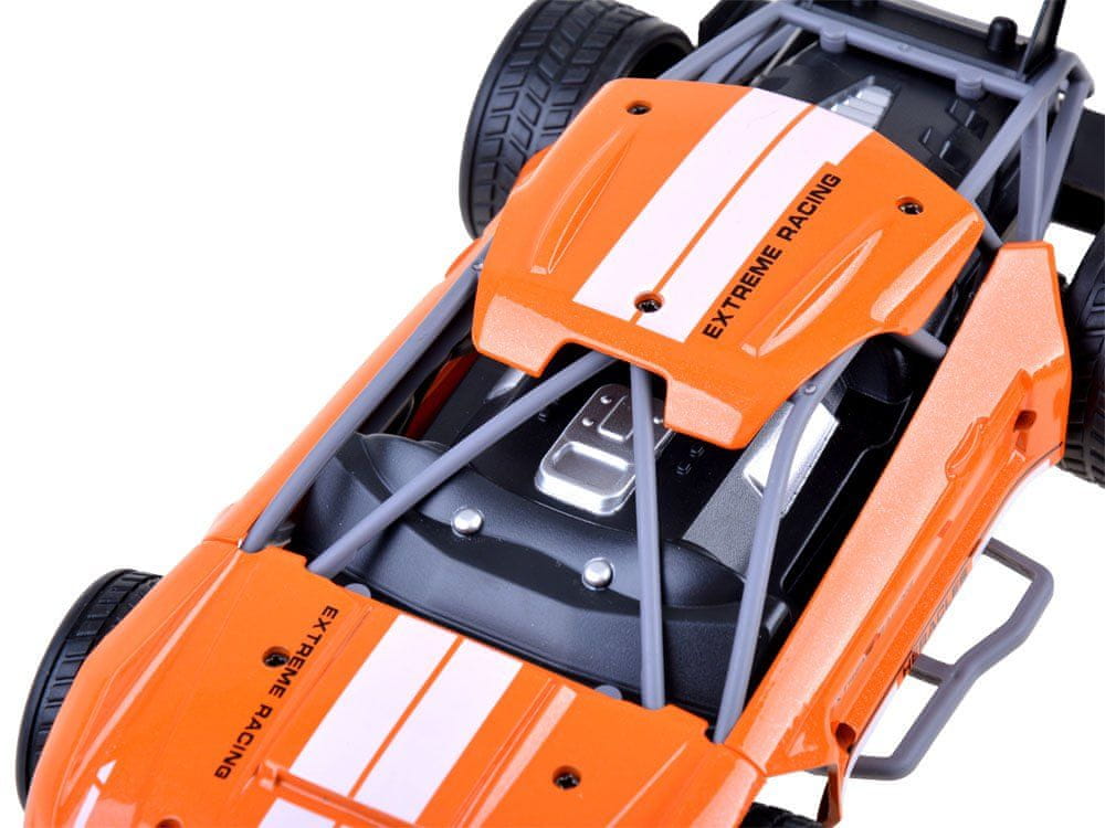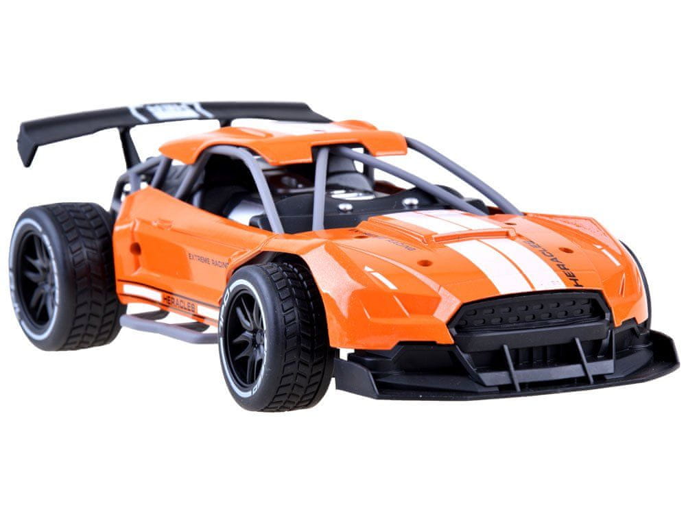 Super zmogljiv, hiter avtoód v intenzivni oranžni barvi zagotovo bo zadovoljil vsakogar (ne le otroka:), ki ima rad avtomobilske dirke. Avtomobil je daljinsko voden z daljinskim upravljalnikom. Karoserija je izdelana iz kovine, drugi dodatni elementi pa iz plastike, kar prispeva k odličnemu videzu tega športnega avtomobila. Vse je bilo izdelano z veliko natančnostjo in pozornostjo do najmanjših podrobnosti, zato je avtomobil videti zelo realistično. Njegova pametna zasnova in teža s štirimi gumijastimi kolesi zagotavljata trden oprijem tal in mu omogočata, da se po stezi vozi s hitrostjo do 15 km/h! Njegova konstrukcija ni toga, zato je izjemno odporen na nepričakovane nesreče med vožnjo.