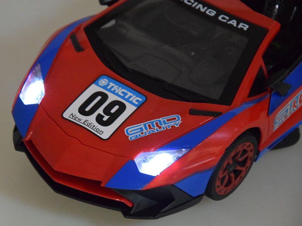 Super, vrhunski športni avto na daljinsko upravljanje za malega voznika relija. Avto, ki ga upravlja daljinski upravljalnik, vozi naprej, nazaj, desno in levo. Z daljinskim upravljalnikom lahko otrok odpira tudi vrata in streho vozila. Avtoód v presenetljivi rdeči in modri barvi ima športno silhueto, pnevmatike z gumijastim tekalcem in svetlobne učinke, ki se aktivirajo med vožnjo. Celotno vozilo je izdelano iz trdne plastike. Celoten komplet se upravlja z daljinskim upravljalnikom z gumijasto anteno.
