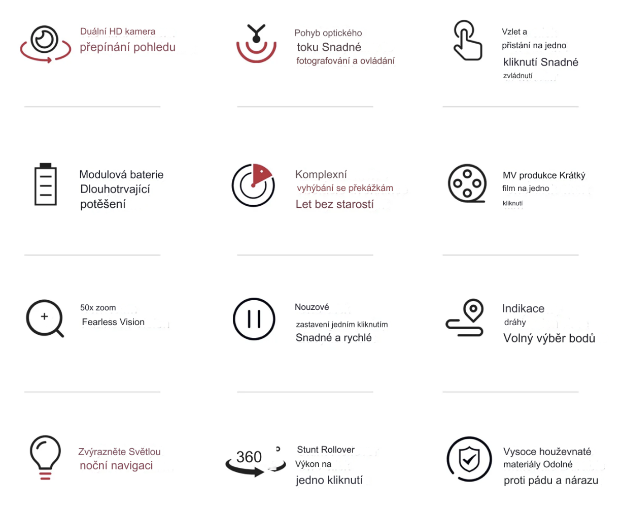 • dvojna kamera HD z optičnim tokom predstavlja najnovejšo inovacijo za nemoteno letenje.
