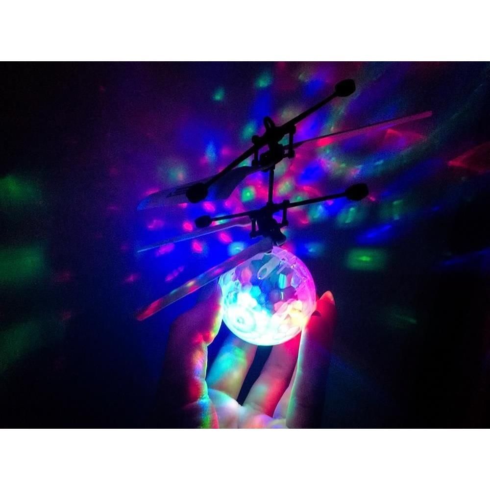 Leteča žoga, ki med letenjem utripa pisane luči, bo poskrbela za veliko veselja in zabave. Žoga ima vgrajen senzor, ki omogoča upravljanje z roko. Samo aktivirajte igračo z gumbom na žogi in jo postavite navpično na roko. Propelerji so dovolj prožni in vzdržljivi, da lahko igračo enostavno dvignete v zrak. Žoga ves čas leta oddaja pisane LED luči, ki izgledajo spektakularno zvečer ali v zatemnjenem prostoru. Igračo je mogoče polniti s priloženim napajalnim kablom USB, na primer tako, da jo povežete z računalnikom ali prenosnikom.