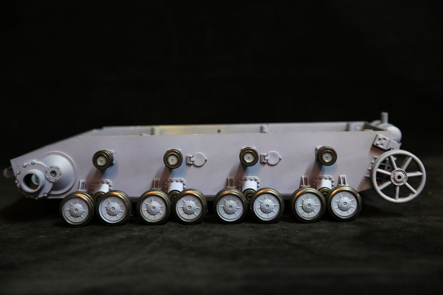 59–019 Šasija (spodnji tank) s kolesi za 3859 Spodnji tank s kolesi za daljinsko voden tank Panzer IV 3859 Originalni rezervni deli Heng Long zagotavljajo pravilno delovanje modela. Količina: 1 kos Barva: Siva Material: Plastika