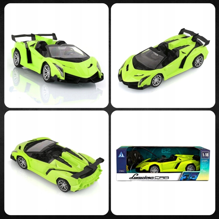 Avtomobilček ima lahko in trpežno konstrukcijo ter športen dizajn z zeleno karoserijo. Gumijaste pnevmatike zagotavljajo oprijem med krmiljenjem. Vožnja je zelo zabavna, še posebej za najmlajše, zato priloženi daljinski upravljalnik omogoča krmiljenje tega majhnega modelčka avtomobilčka. Ima dva ločena gumba za vožnjo naprej, nazaj in bočno vožnjo. Oddaja na frekvenci 27 MHz.