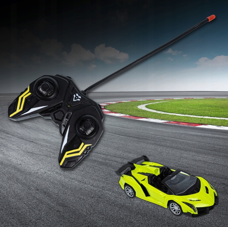Ta avtomobil na daljinsko upravljanje je enostaven za upravljanje zaradi priloženega daljinskega upravljalnika. Komplet vsebuje tako 23 cm dolg avtomobilček kot daljinski upravljalnik. Avtomobilček napajajo baterije AA, zaradi česar je priročen za uporabo.