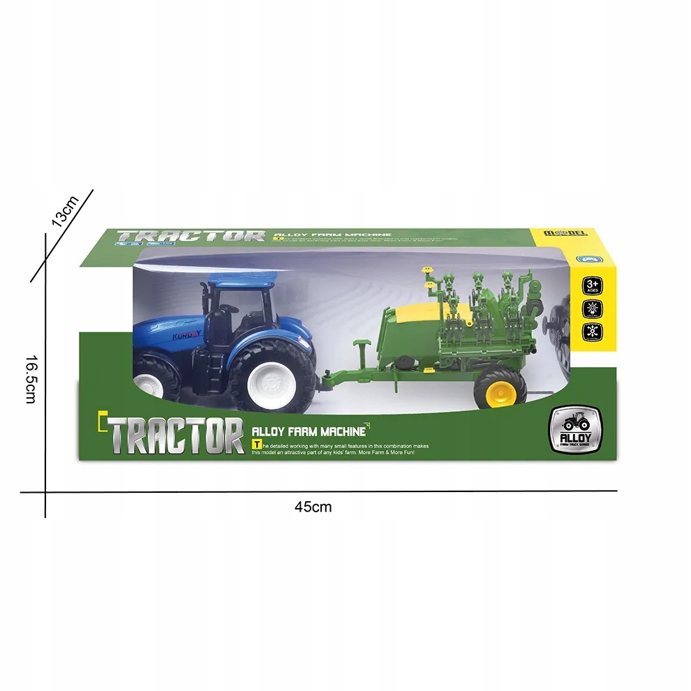 ? Popoln nadzor nad kmetijskim strojem – Komplet je zasnovan za realistično igro in prosto gibanje po različnih površinah. Zahvaljujoč robustnim kolesom in kovinski konstrukciji je traktor idealen za vožnjo po preprogi, travi ali pesku. Je odlična izbira za dejavnosti v zaprtih prostorih in na prostem, saj spodbuja otroško domišljijo.