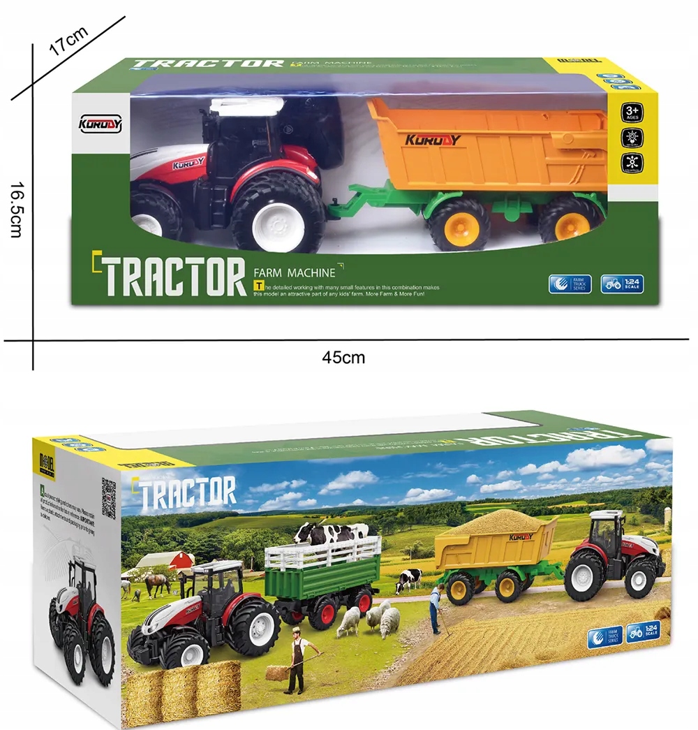 ✅ Realistična oblika – gumijaste pnevmatike, natančne podrobnosti in trpežna konstrukcija, navdihnjena z resničnimi kmetijskimi stroji