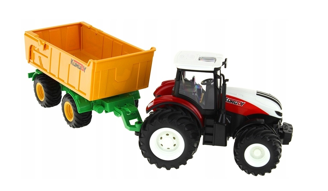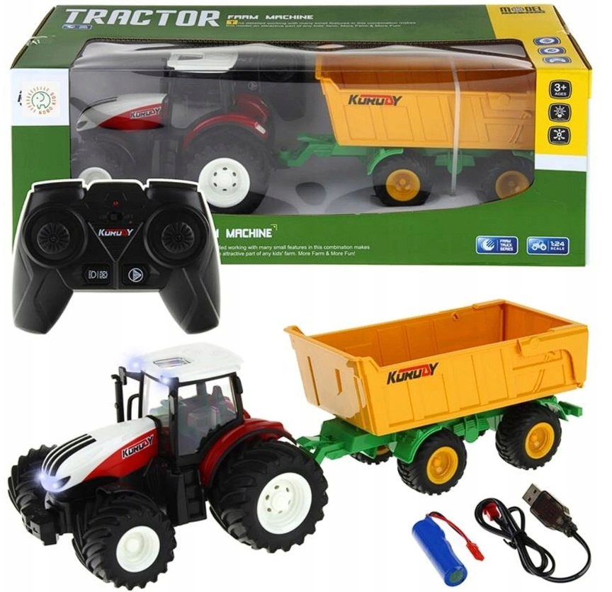 ? Popoln komplet, pripravljen za igro – Traktor, prikolica, daljinski upravljalnik in baterija, vse v privlačni embalaži, zaradi česar je to popolna ideja za darilo. Ta komplet bo zagotovil ure vznemirljive igre in pomagal razviti otrokove koordinacijske sposobnosti in domišljijo!