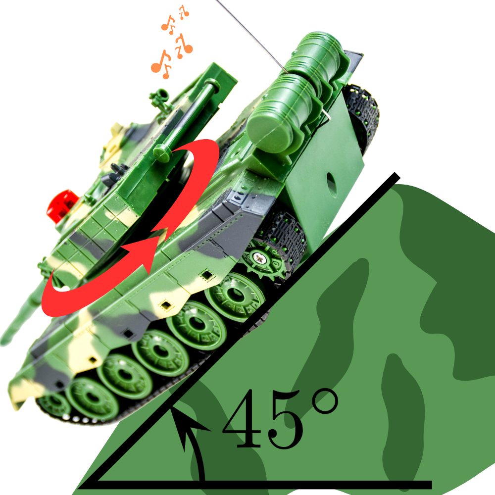 ➡️ Da bi bilo bojišče še bolj realistično, ima igrača števec, ki prikazuje število zadetkov. Ko tank izstreli 4 uspešne strele, postane imobiliziran za 30 sekund, in po tem času lahko nadaljuje boj.